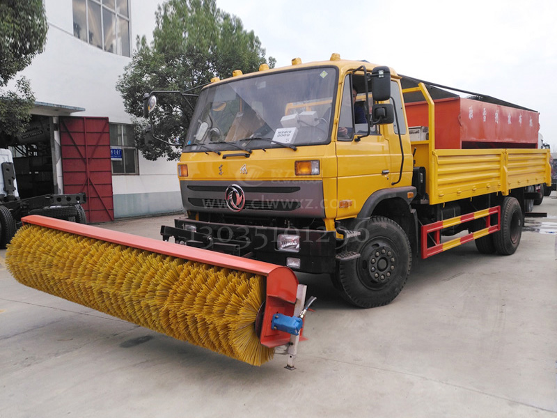 多功能扫雪车,操作人员只要在驾驶室操作即可。当冬季来临积雪在50毫米内时,把车换装上扫雪装置,该车就是一台扫雪车,操作该机车,可以把道路上的积雪清扫到路边。